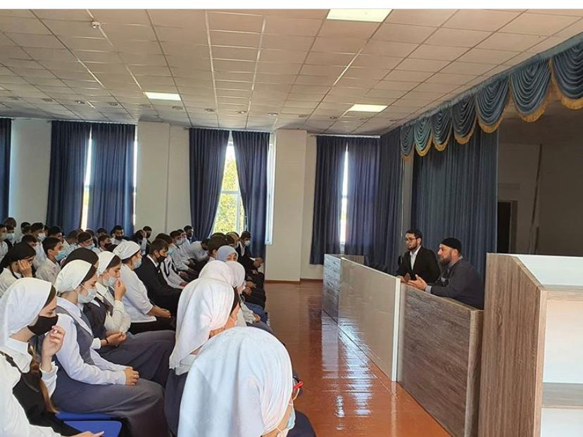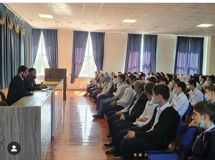Имам провел беседу с учениками рассказывая о важности воспитания подрастающего поколения на основе обычаев и традиций народов Чеченской Республики, примерах нравственных идеалов российской и мировой истории. Формирование ответственного поведения, умения противостоять чуждым идеям и асоциальным проявлениям . Привитие подрастающему поколению основополагающих ценностей, идей и убеждений, отражающих сущность чеченского менталитета и формирование активной и личностной позиции.